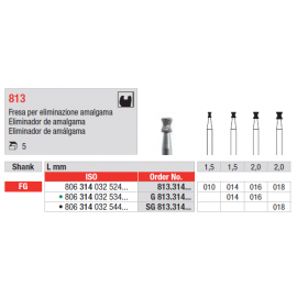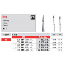Broca diamantada, para utilização em turbina, para remoção de amálgama.