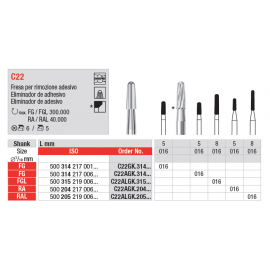 Broca de tungsténio eliminadora de adesivo, em ortodontia, opção turbina ou contra-ângulo.