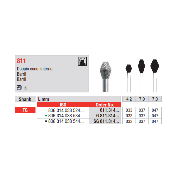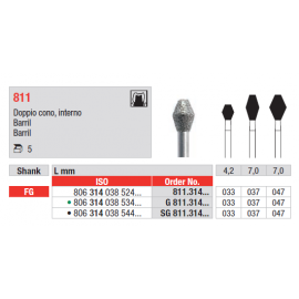 Broca diamantada, para utilização em turbina, formato barril.