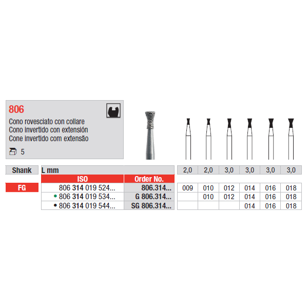 Broca diamantada cone invertido com extensão, para utilização em turbina.