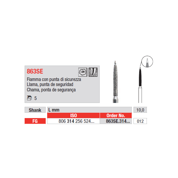 Broca diamantada em chama (com ponta de segurança), para utilização em turbina.