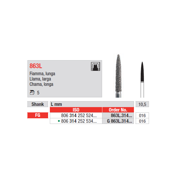 Broca diamantada em chama longa, para utilização em turbina.