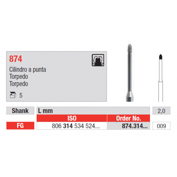 Broca diamantada cilindro com ponta torpedo curta, para utilização em turbina.