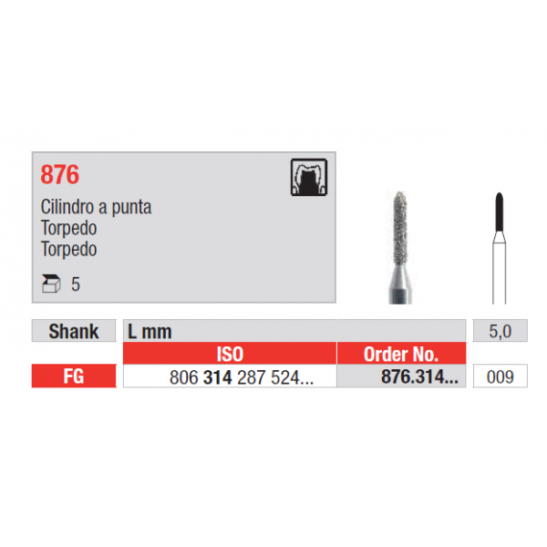Broca diamantada cilindro com ponta torpedo curta, para utilização em turbina.