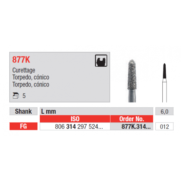 Broca diamantada torpedo cónico, para utilização em turbina.