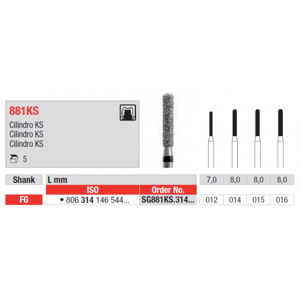 Broca diamantada cilíndrica reta com cantos redondos, para utilização em turbina.