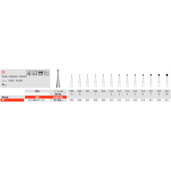 Fresas em tungsténio para acabamento, para uso em peça de mão (HP).