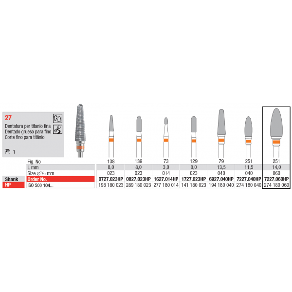 Broca tungsténio para uso em peça de mão. Corte 27 fino para titânio.