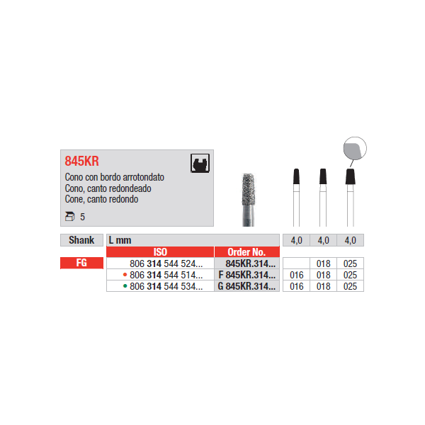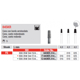 Broca diamantada cone com canto redondo, para utilização em turbina.