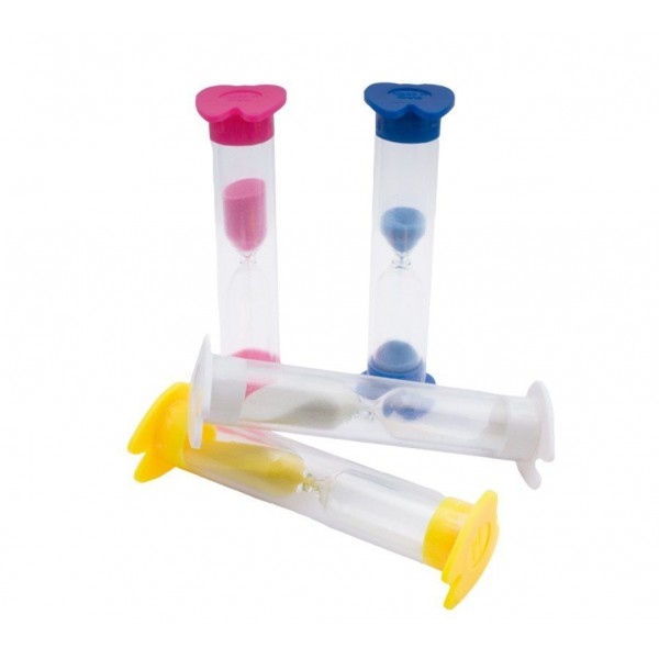 As extremidades da ampulheta são compostas por duas formas de molar de plástico.