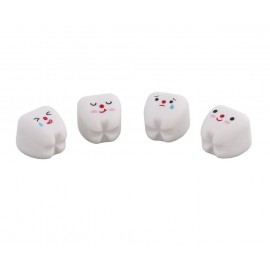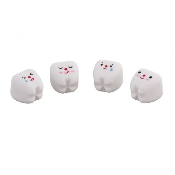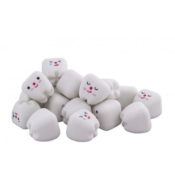 Embalagem com 72 borrachas em forma de dentinho de leite.