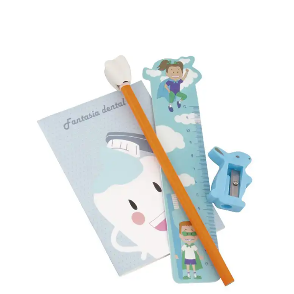 Contém: caderno, lápis, afia, borracha e régua