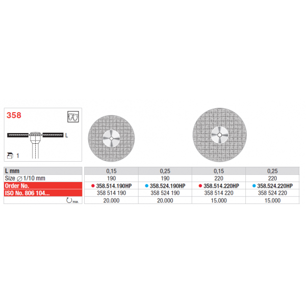 Discos diamantados em granulação grosa ou fina, para separação e contorno de cerâmica.