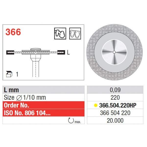 Disco diamantado ultra-fino, com granulação extra-fina para separação e contorno de facetas em cerâmica e compósito em dentes anteriores e posteriores.