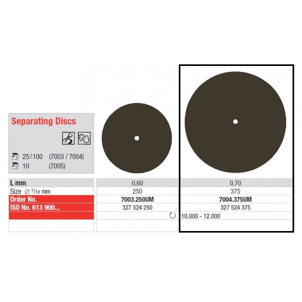 Os discos separadores estão indicados para o corte de ligas metálicas preciosas e não preciosas, não produzindo aquecimento do material e com reduzida produção de poeira metálica.