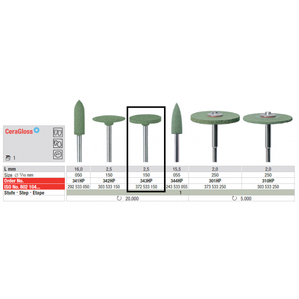 Sistema de borrachas impregnadas de diamante para polimento em 3 passos de todos os tipos de cerâmica ZrO2, sem gerar calor.