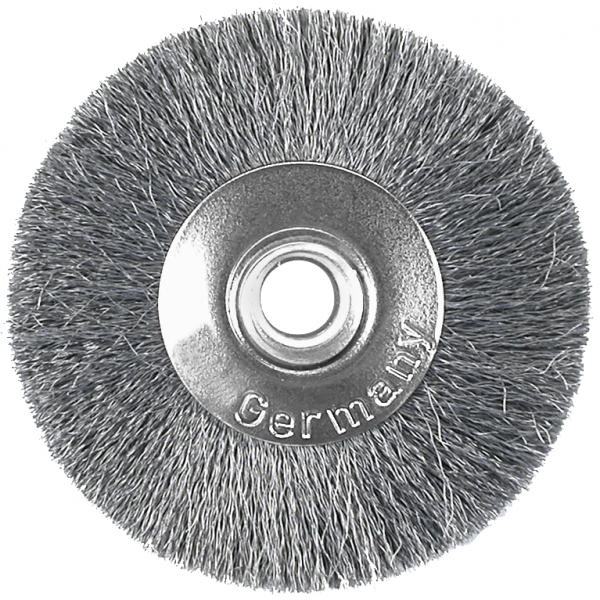 Escova de fio de aço ondulado, com centro metálico. 2 filas